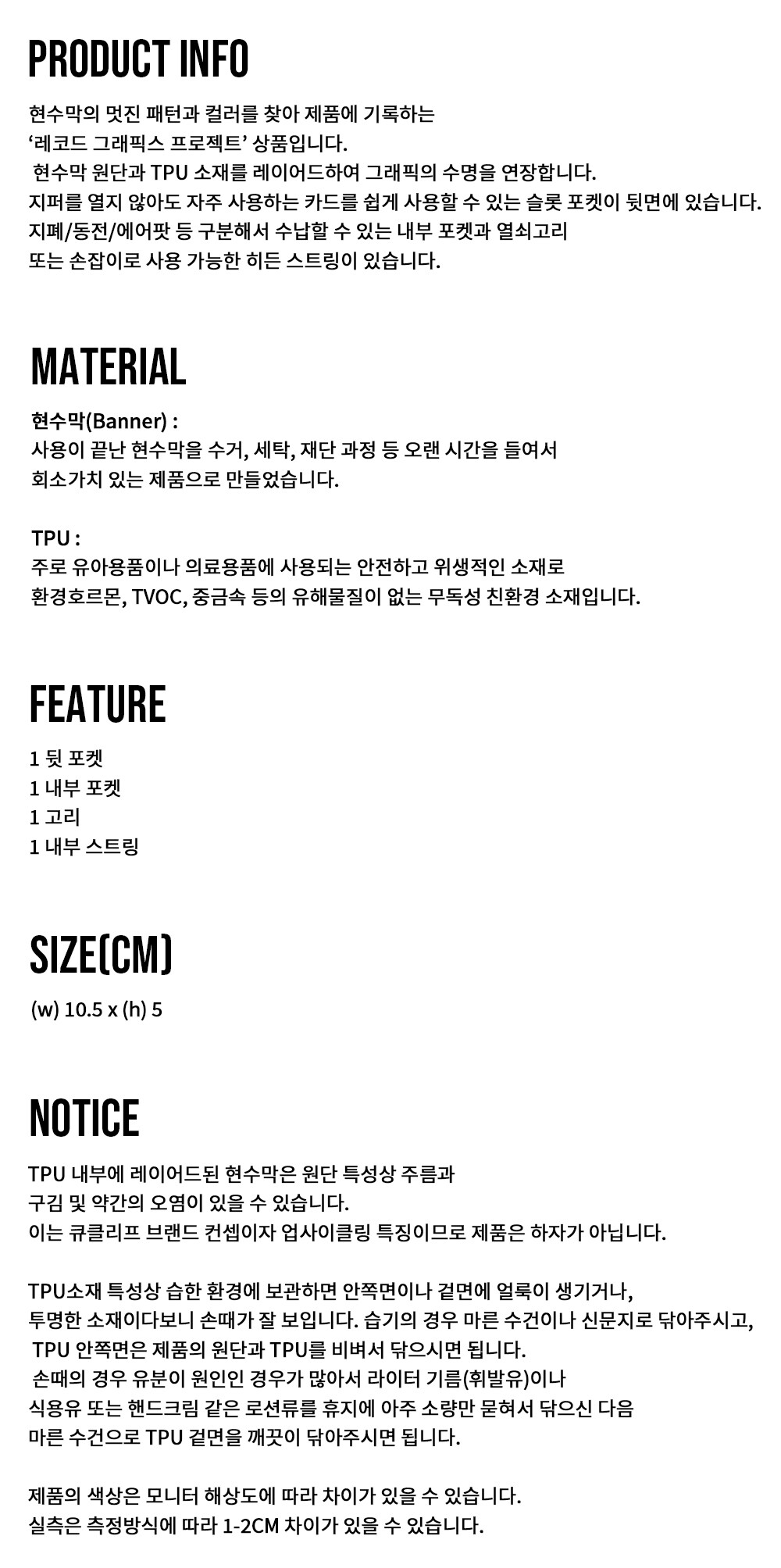 - 업사이클 특성상 스크래치, 올풀림, 구김 등이 있을 수 있습니다.