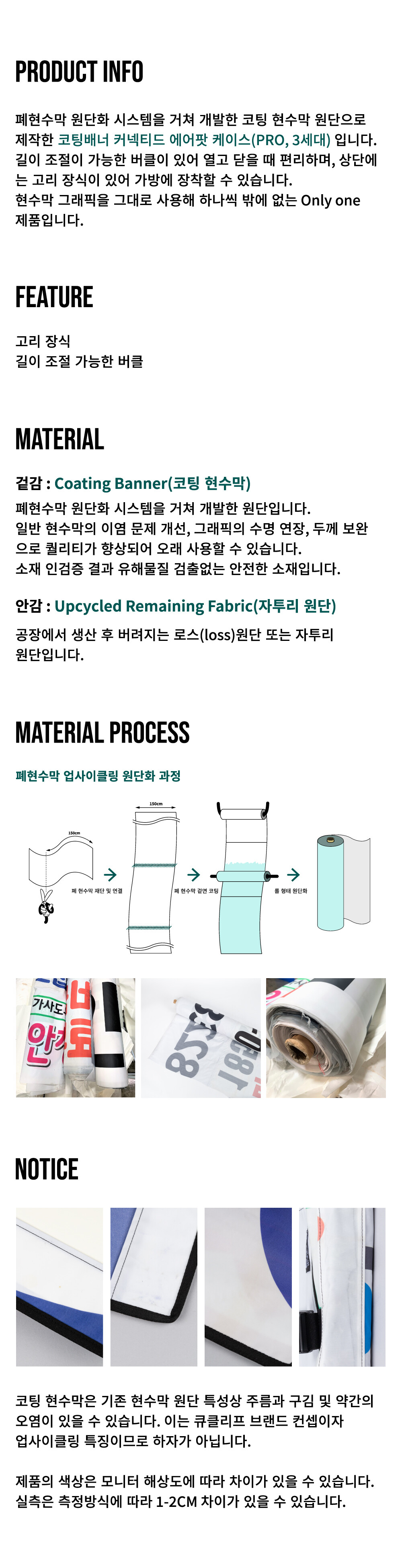 - 업사이클 특성상 스크래치, 올풀림, 구김 등이 있을 수 있습니다.