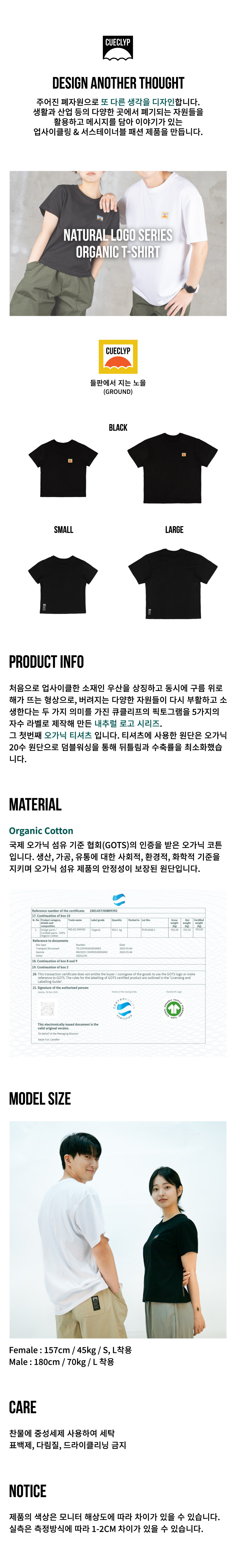 내추럴 로고 오가닉 티셔츠 - GROUND (블랙)
