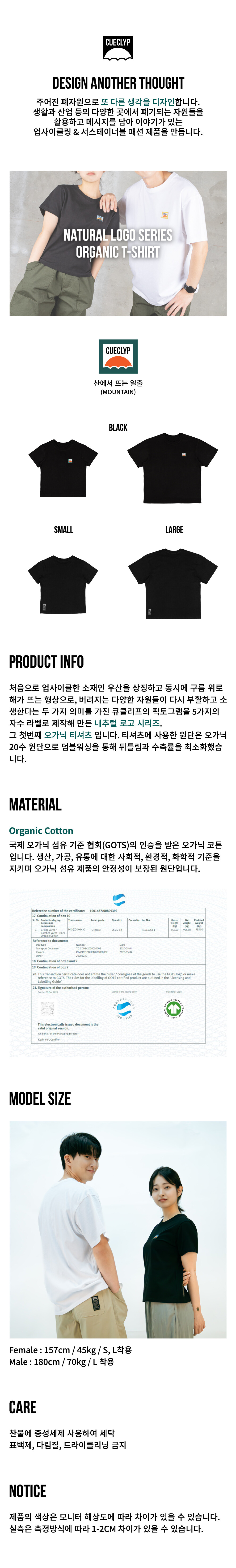 내추럴 로고 오가닉 티셔츠 - MOUNTINE (블랙)