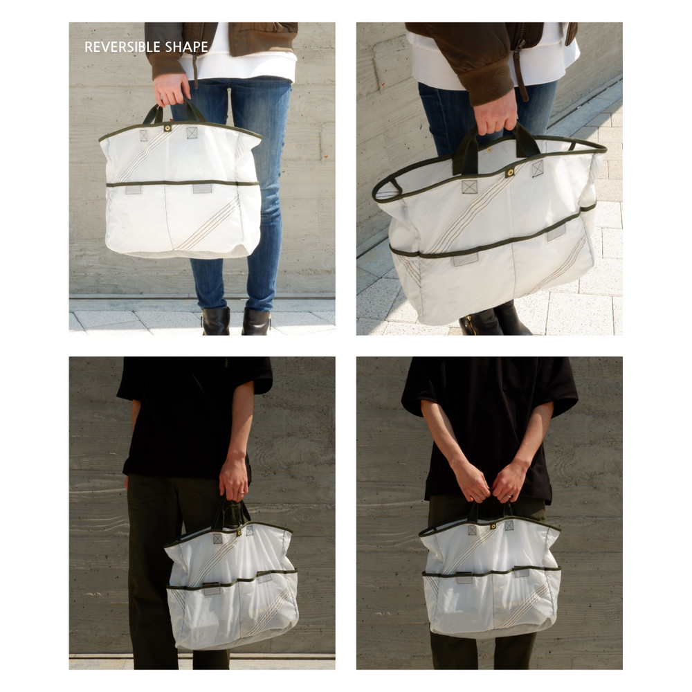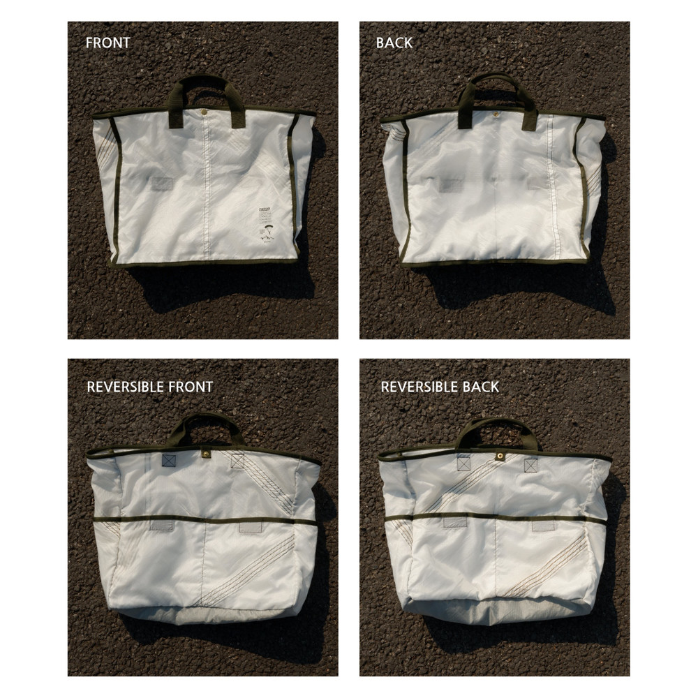 Description 수명이 끝나 폐기된 낙하산 원단으로 제작한 토트백입니다. 소재 특유의 빈티지한 이음새와 스티치가 인상적 입니다.
