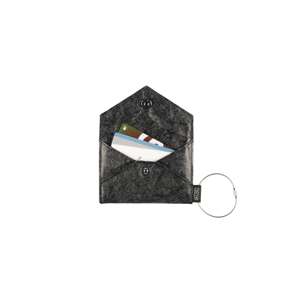 [Product Features] - 클래식 봉투 형태의 미니멀 감성 디자인 - 생활 방수 가능한 자연스러운 종이 질감 원단 - 스냅 버튼 클로징으로 카드, 지폐를 안전하게 보관 - 라벨 고리 디테일로 키링이나 가방에 장착 가능