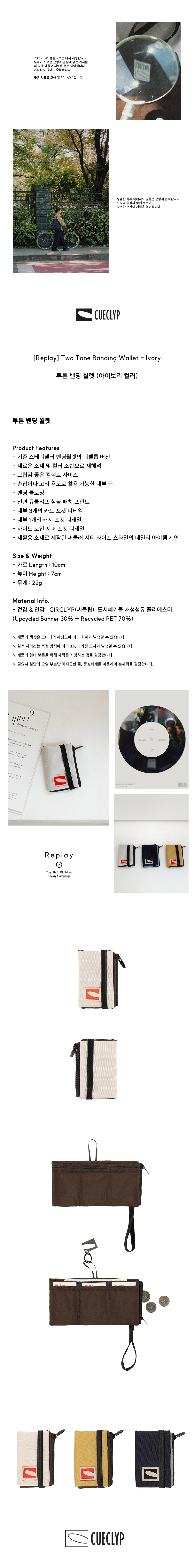 Product Features - 기존 스테디셀러 밴딩월렛의 디벨롭 버전 - 새로운 소재 및 컬러 조합으로 재해석 - 그립감 좋은 컴팩트 사이즈 - 손잡이나 고리 용도로 활용 가능한 내부 끈 - 밴딩 클로징 - 전면 큐클리프 심볼 패치 포인트 - 내부 3개의 카드 포켓 디테일 - 내부 1개의 캐시 포켓 디테일 - 사이드 코인 지퍼 포켓 디테일 - 재활용 소재로 제작된 써큘러 시티 라이프 스타일의 데일리 아이템 제안